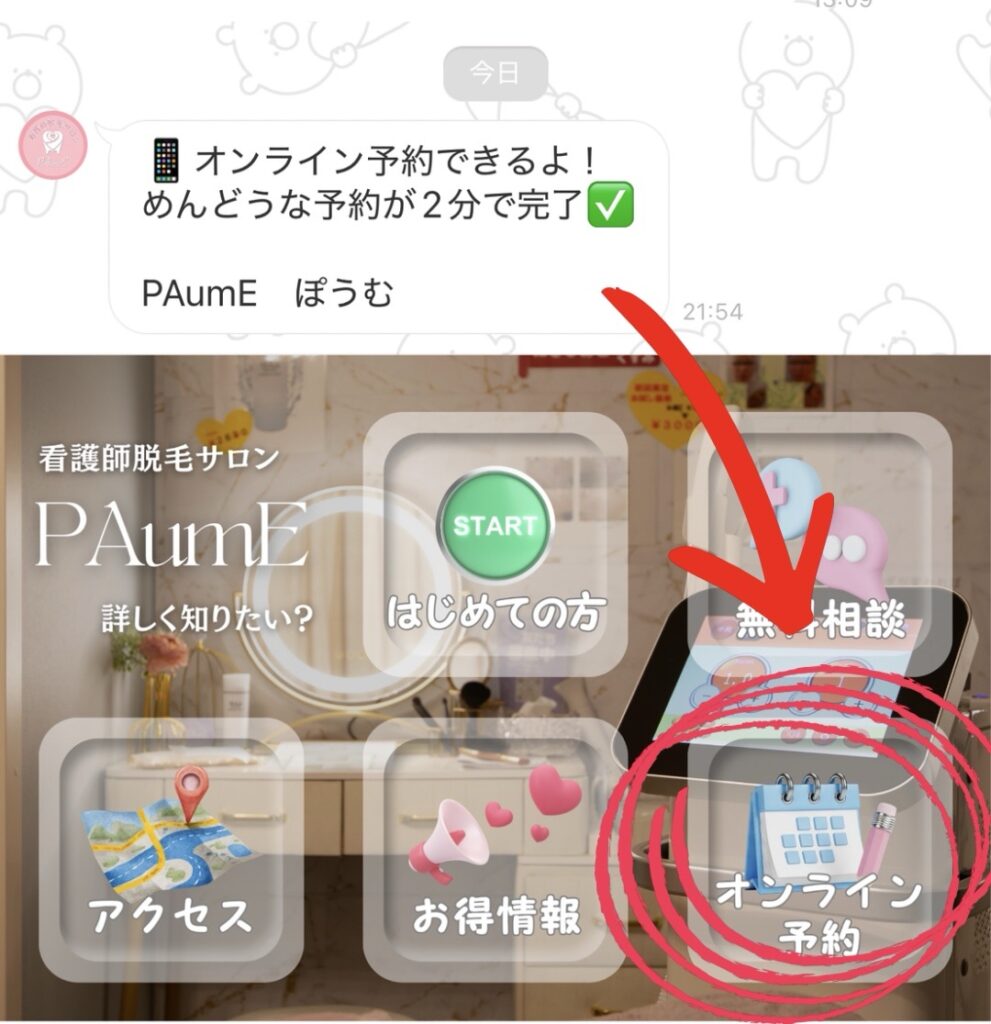 オンライン予約のところをタップしてみてね🥰